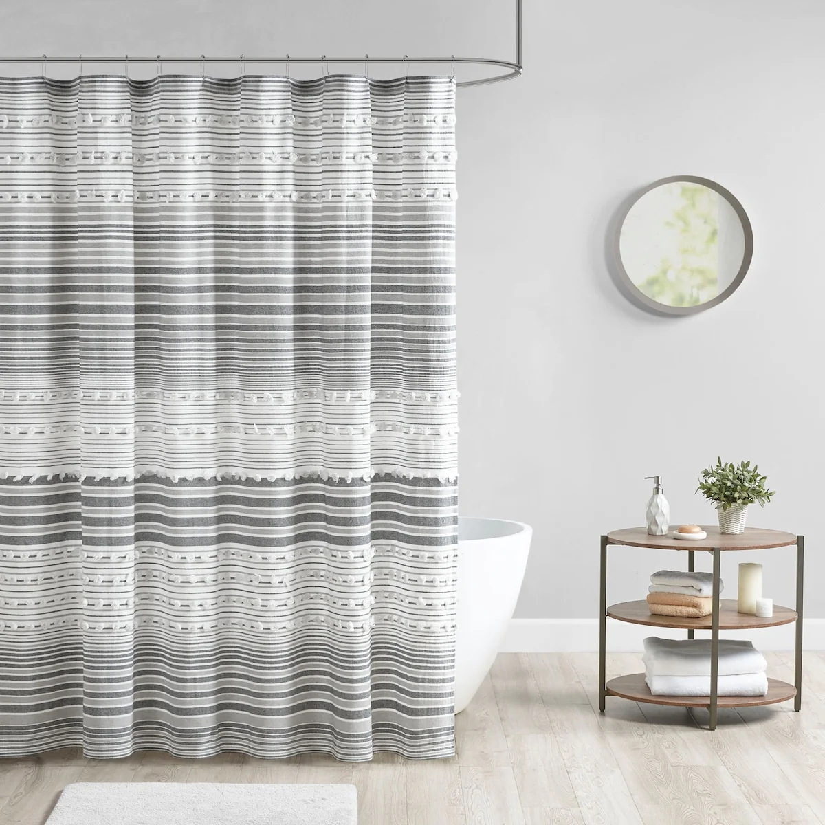 Grey Ombre Shower Curtain, 72x72, Farmhouse Waves, 3D Textured