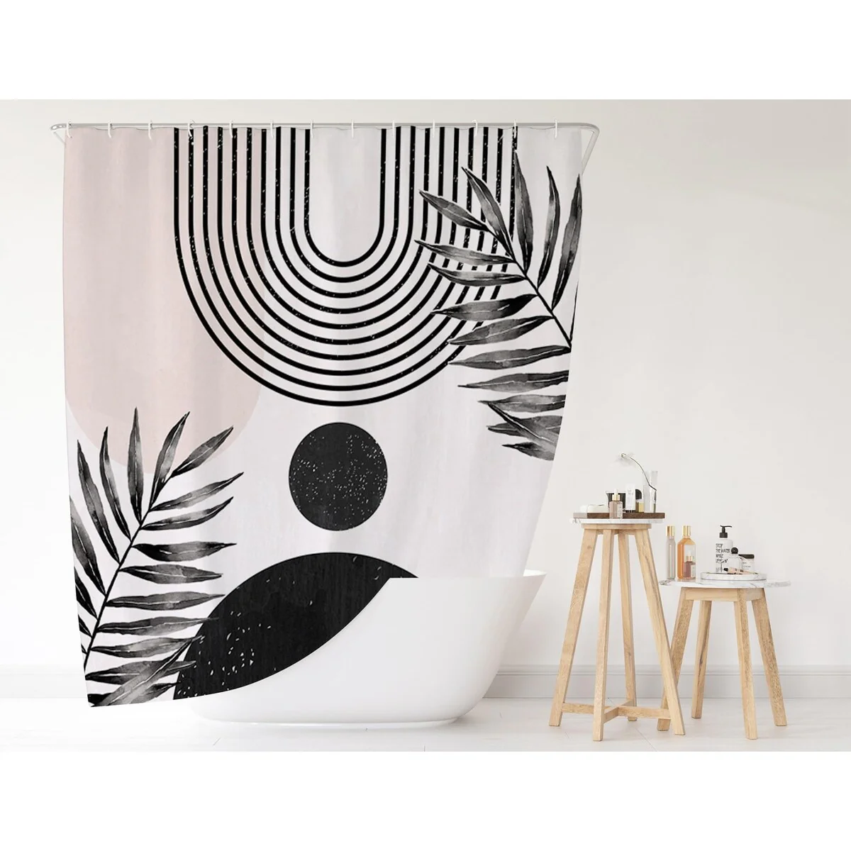 72x72 Inches Abstract Black Boho Arch Sun Beige Shower Curtain
