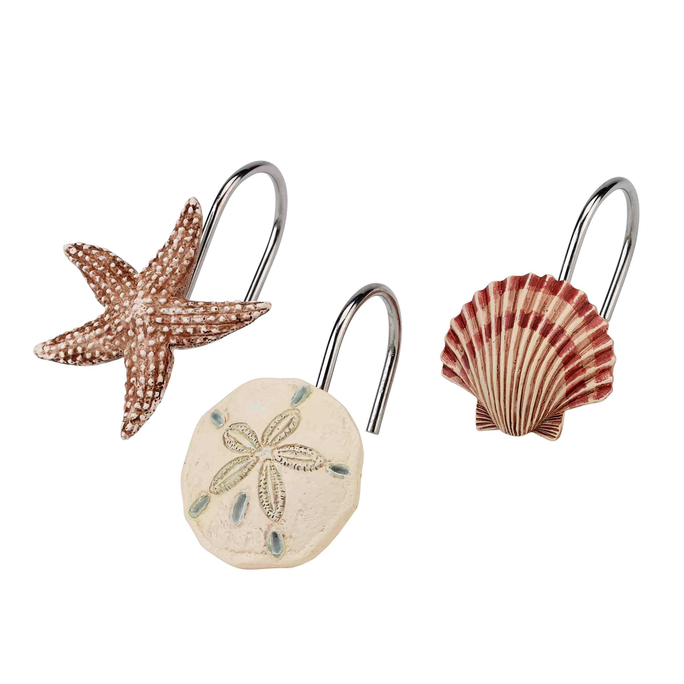 Cedar Floral Seashells Starfish Flowers Shower Curtains with Hooks