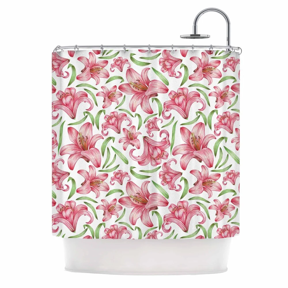 KESS InHouse Alisa Drukman "Lily Flowers" Pink Nature Shower Curtain (69x70) - Multi - 69 x 70