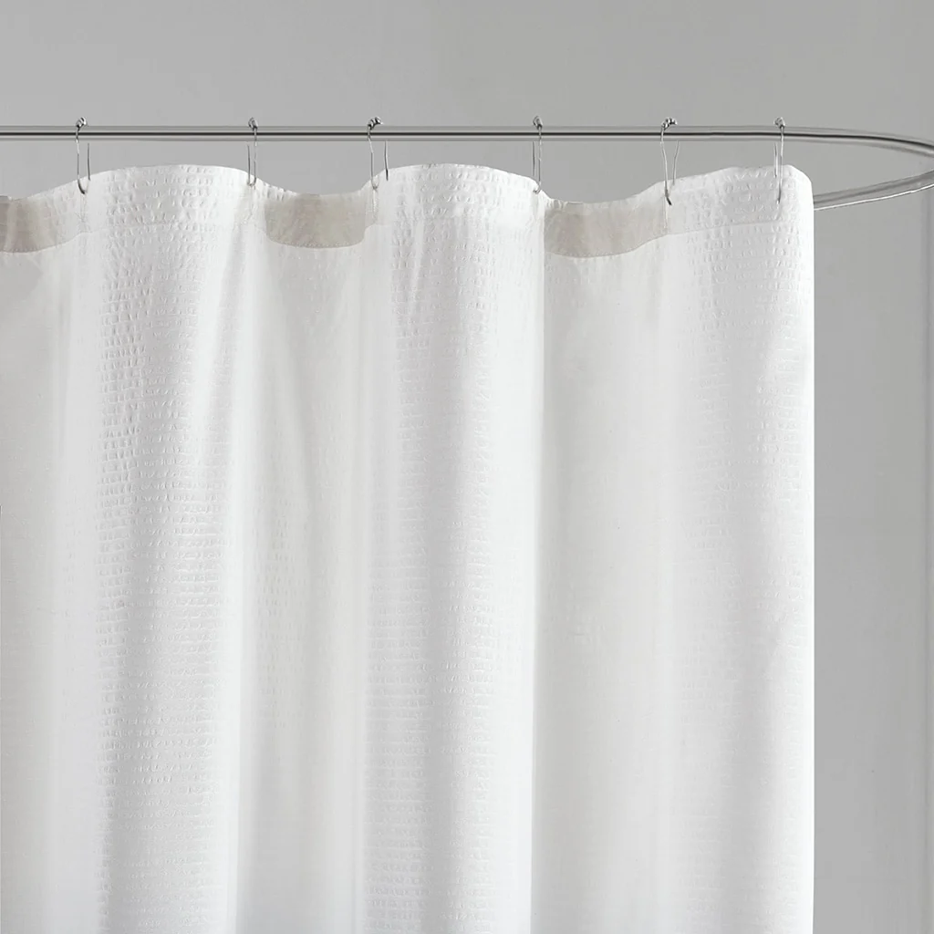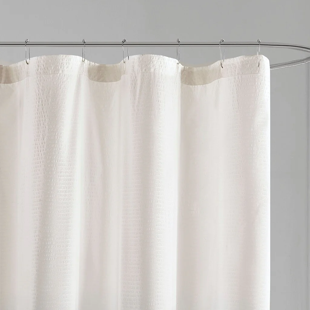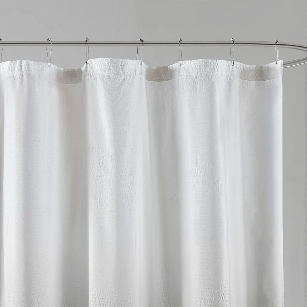 Creative Scents Waffle White Fabric Shower Curtain for Bathroom
