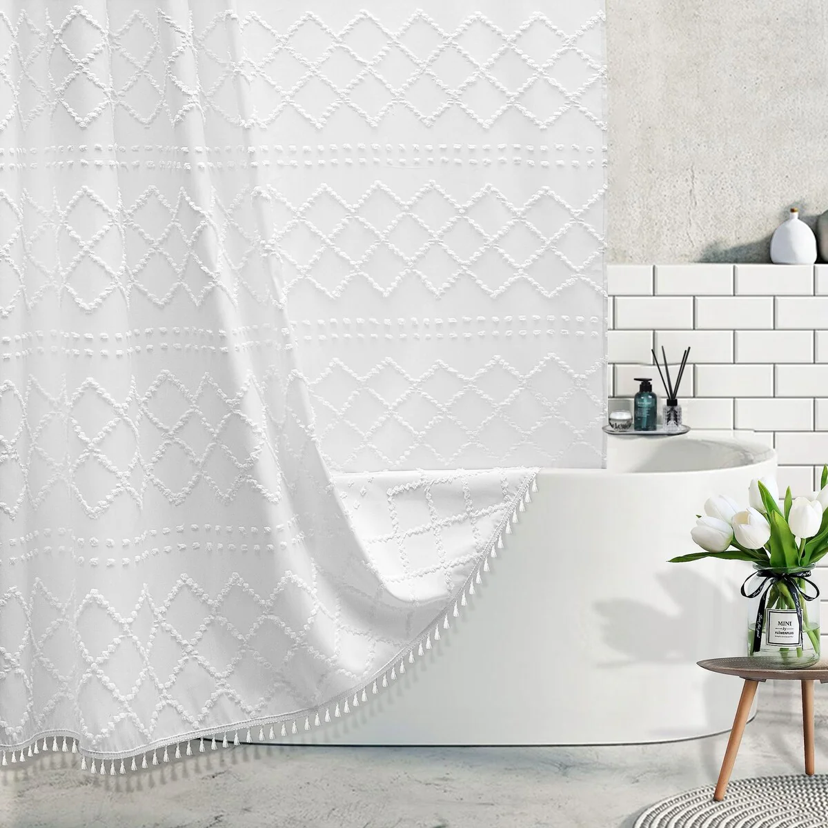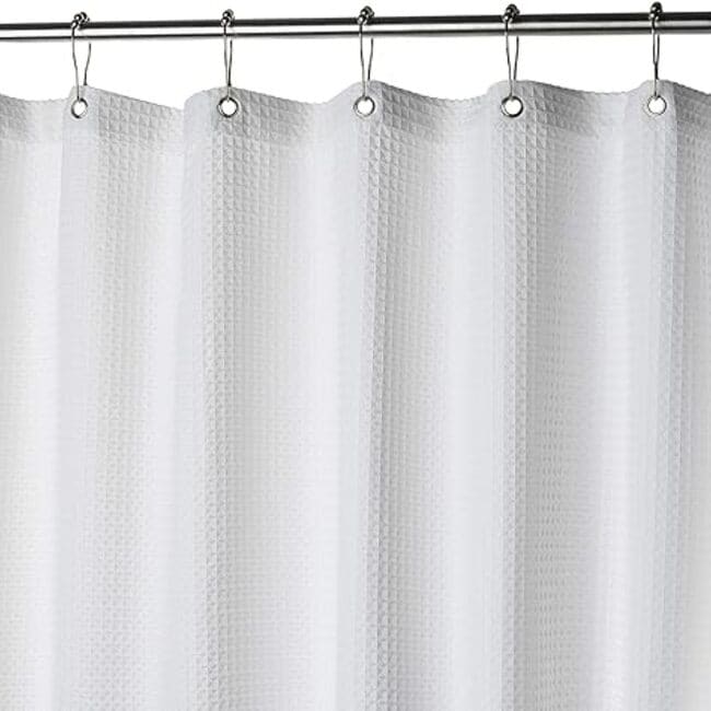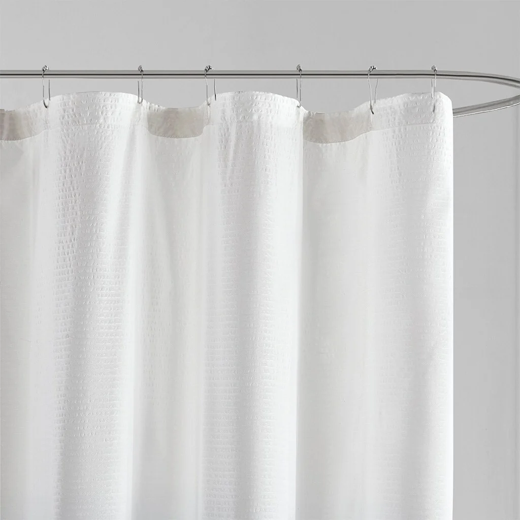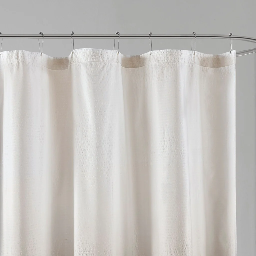 Creative Scents Waffle White Fabric Shower Curtain for Bathroom