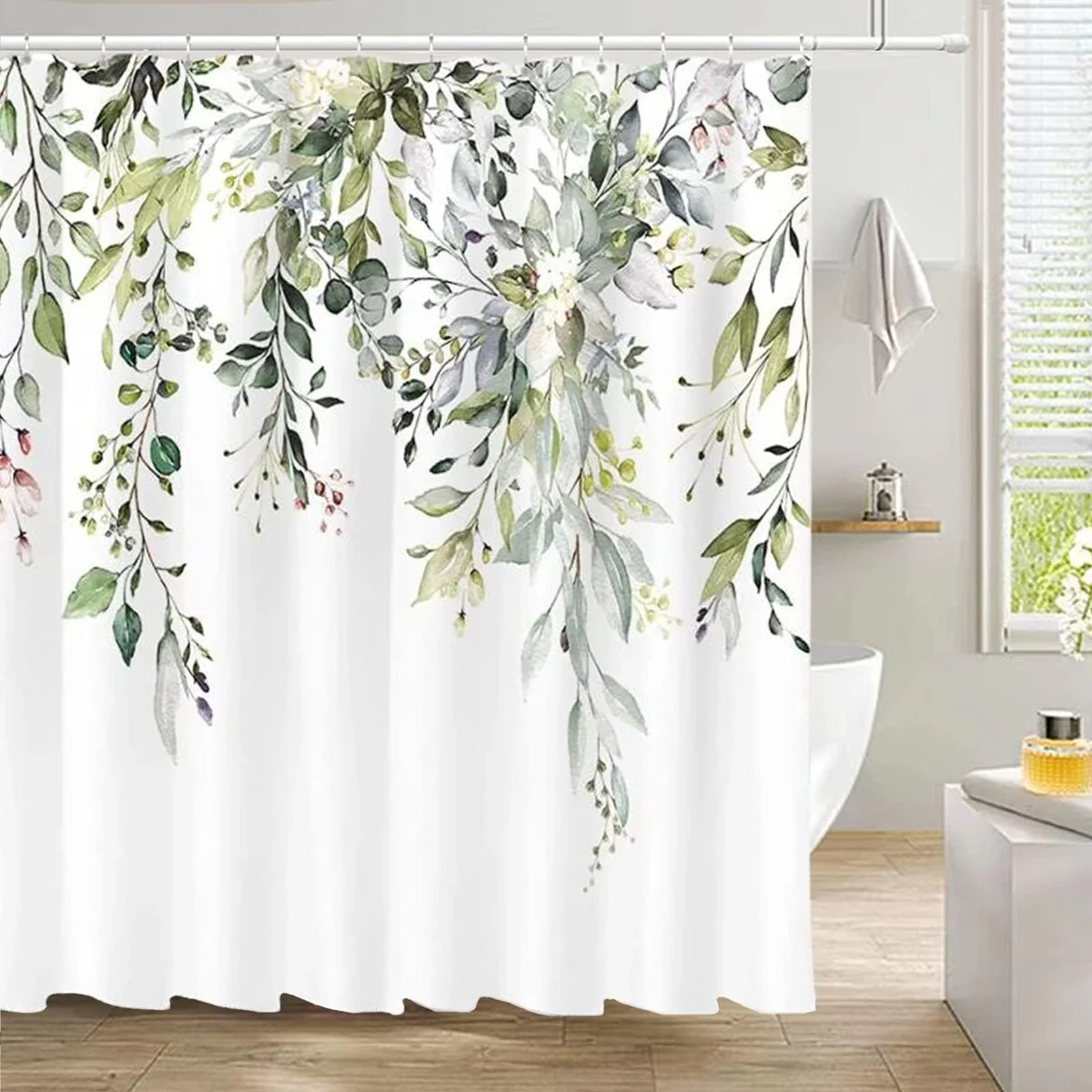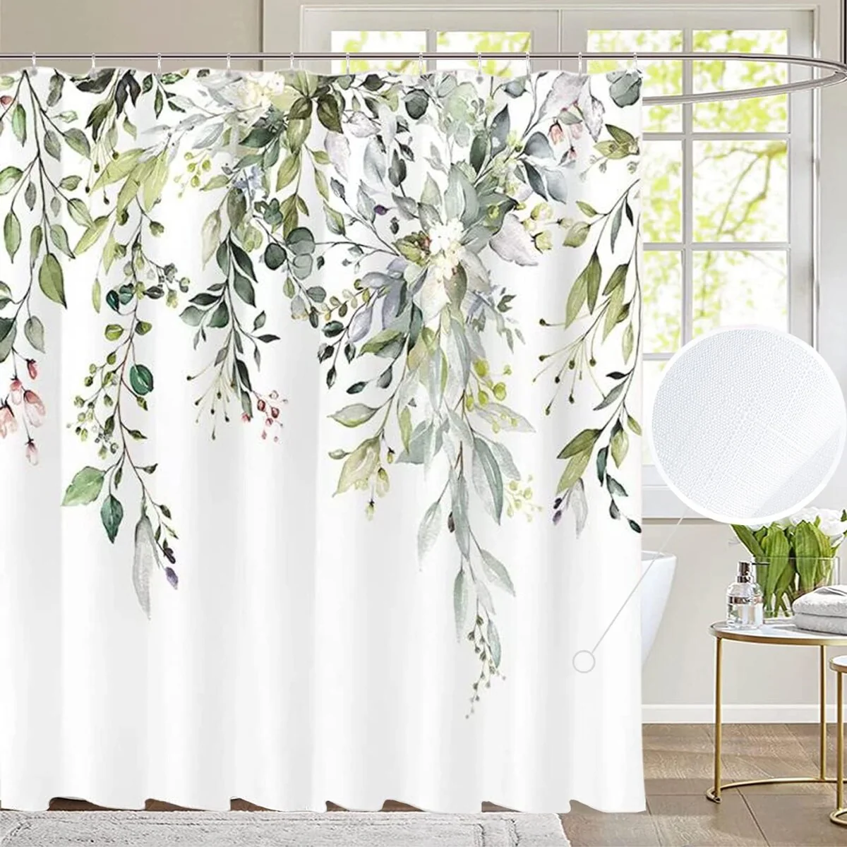 Sage Green Shower Curtain for Bathroom Eucalyptus Fabric 72" x 72"