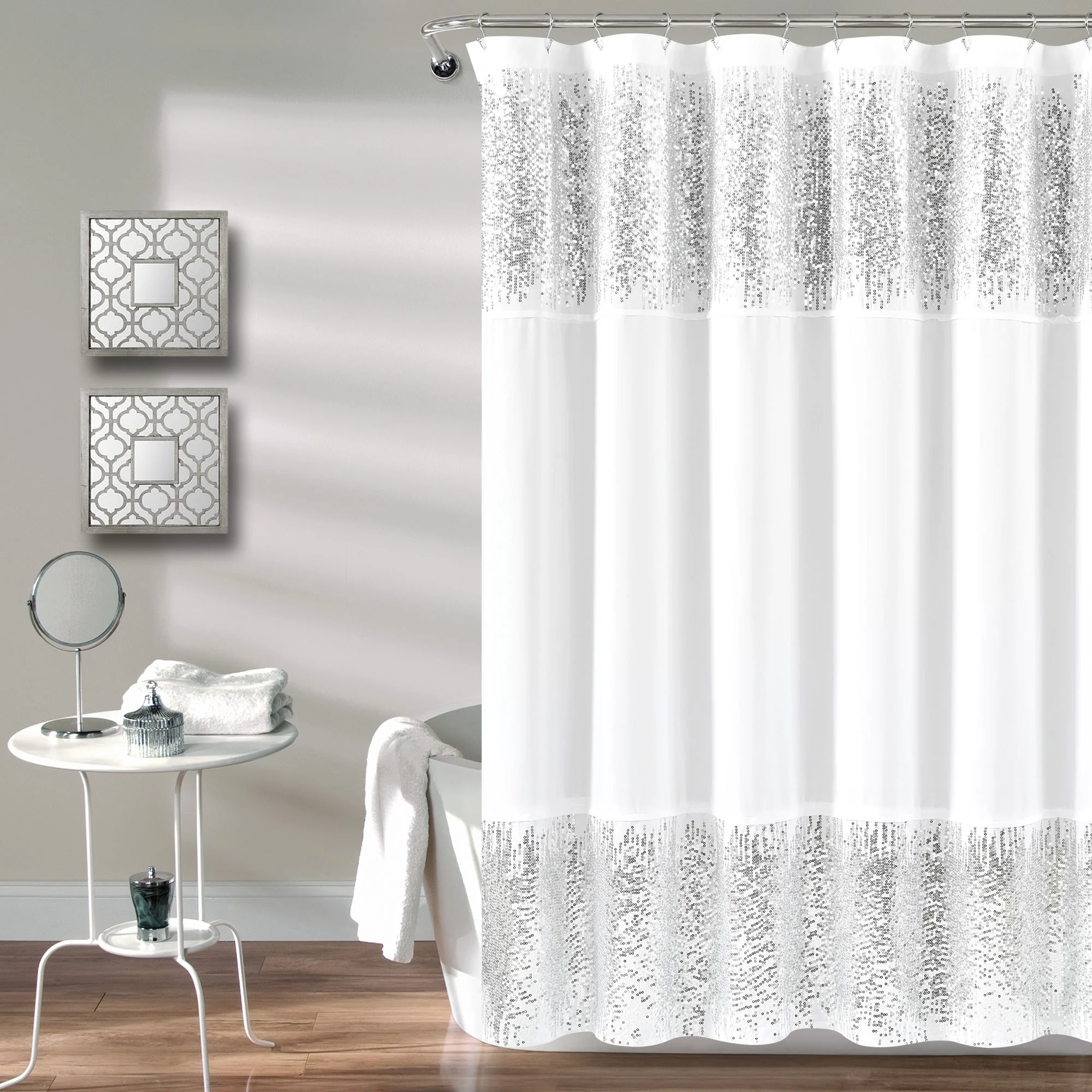 Lush Decor Polyester Shimmer Sequins Shower Curtain