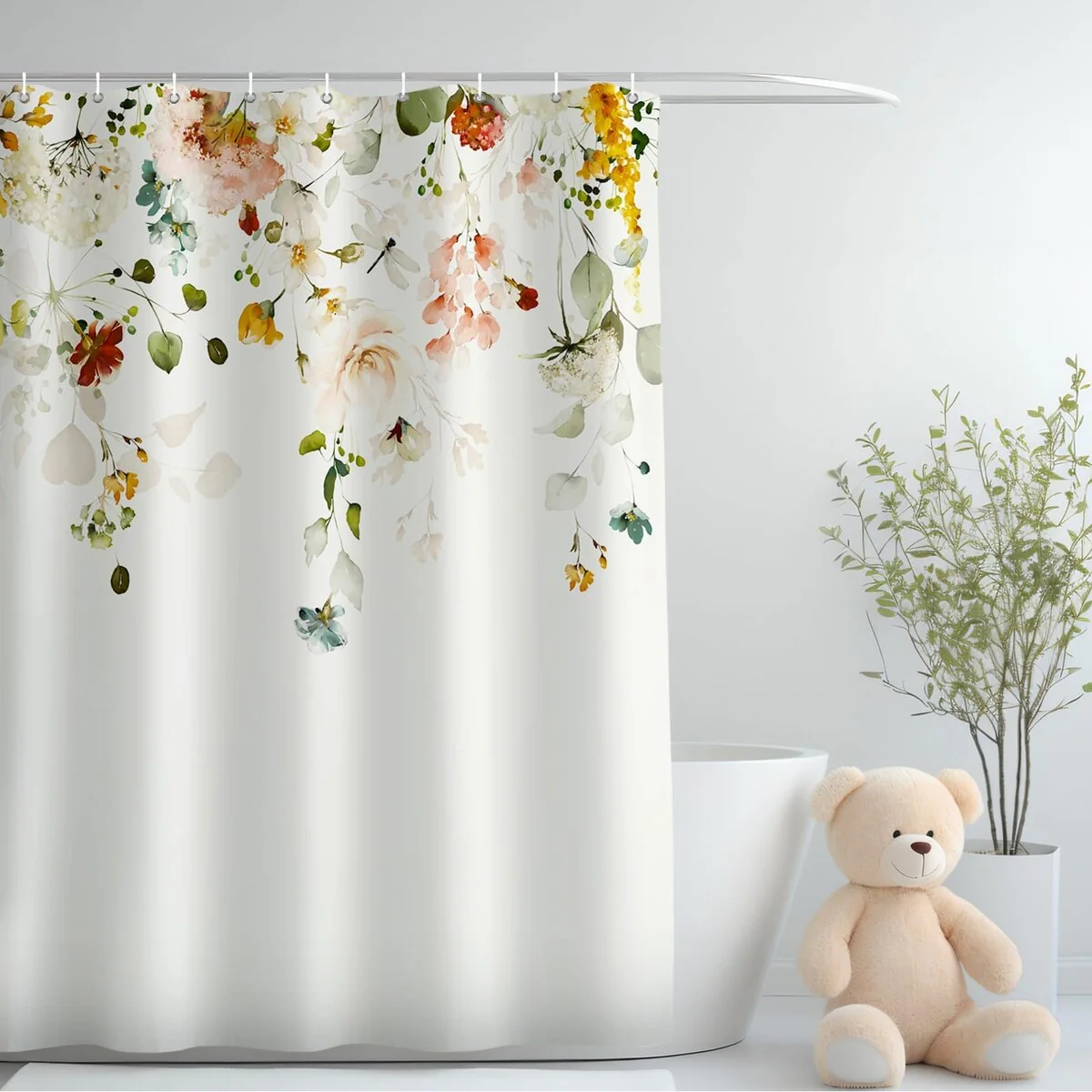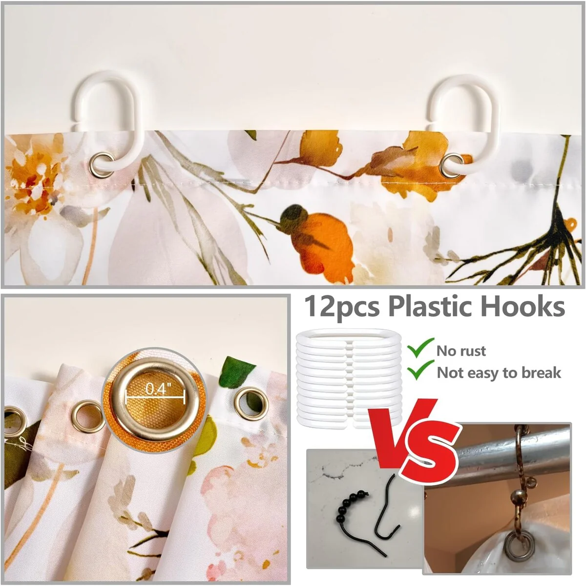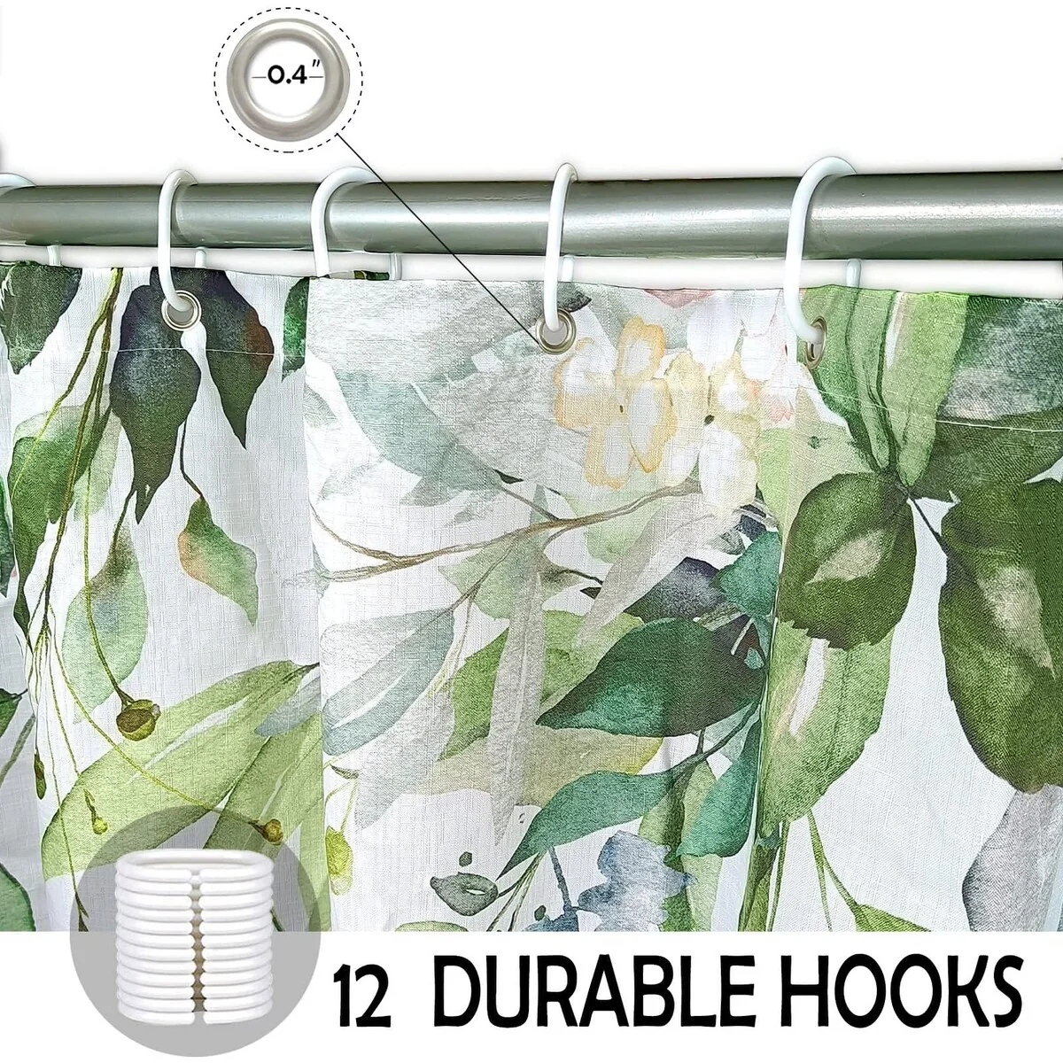 Floral Waterproof Fabric Shower Curtain with 12 Hooks 72x72 Inch