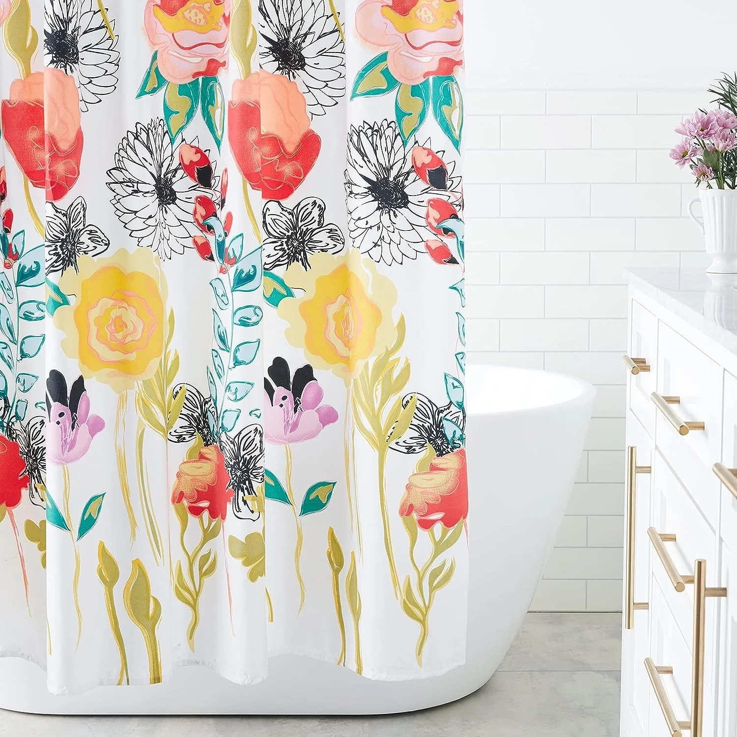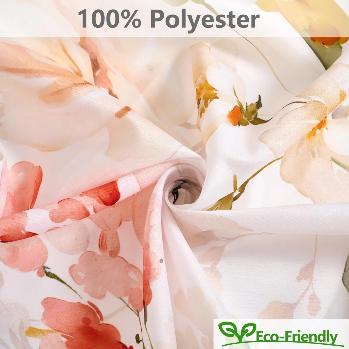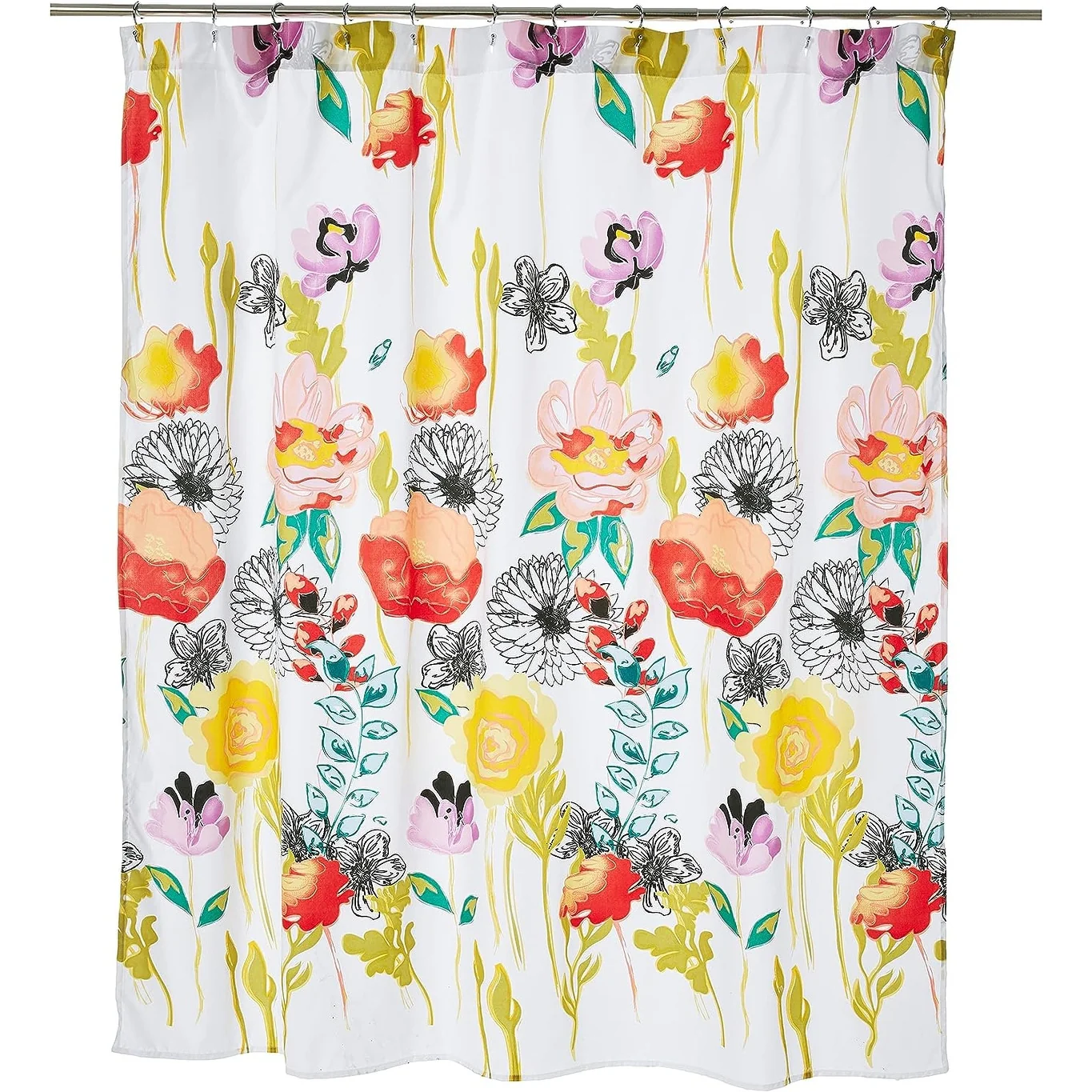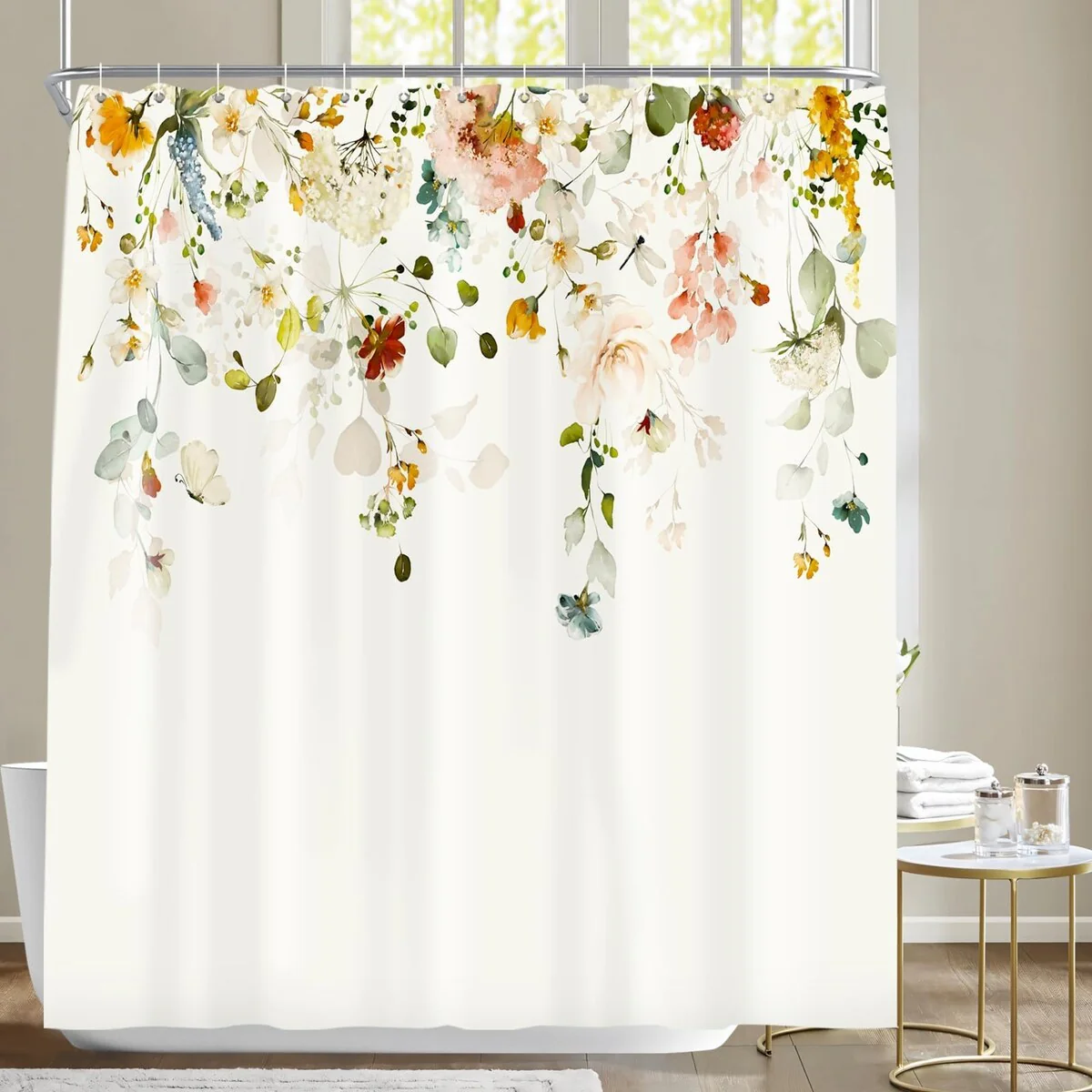 Floral Waterproof Fabric Shower Curtain with 12 Hooks 72x72 Inch