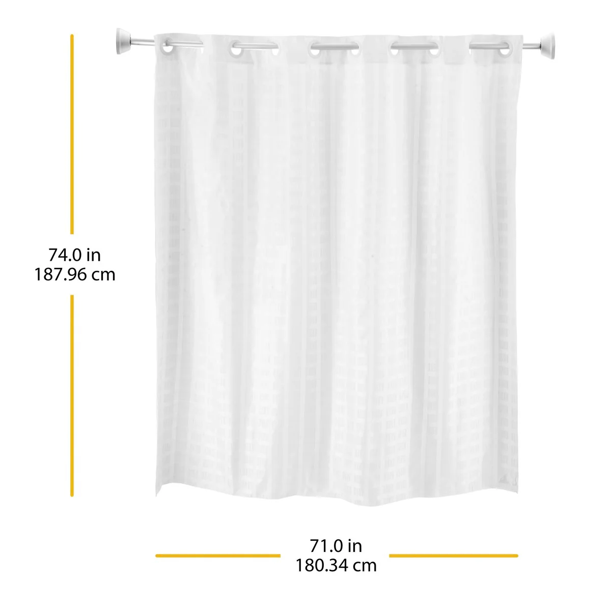 Whitmor No Hook Split Ring Shower Curtain w/No Snap Liner, 71" x 74"