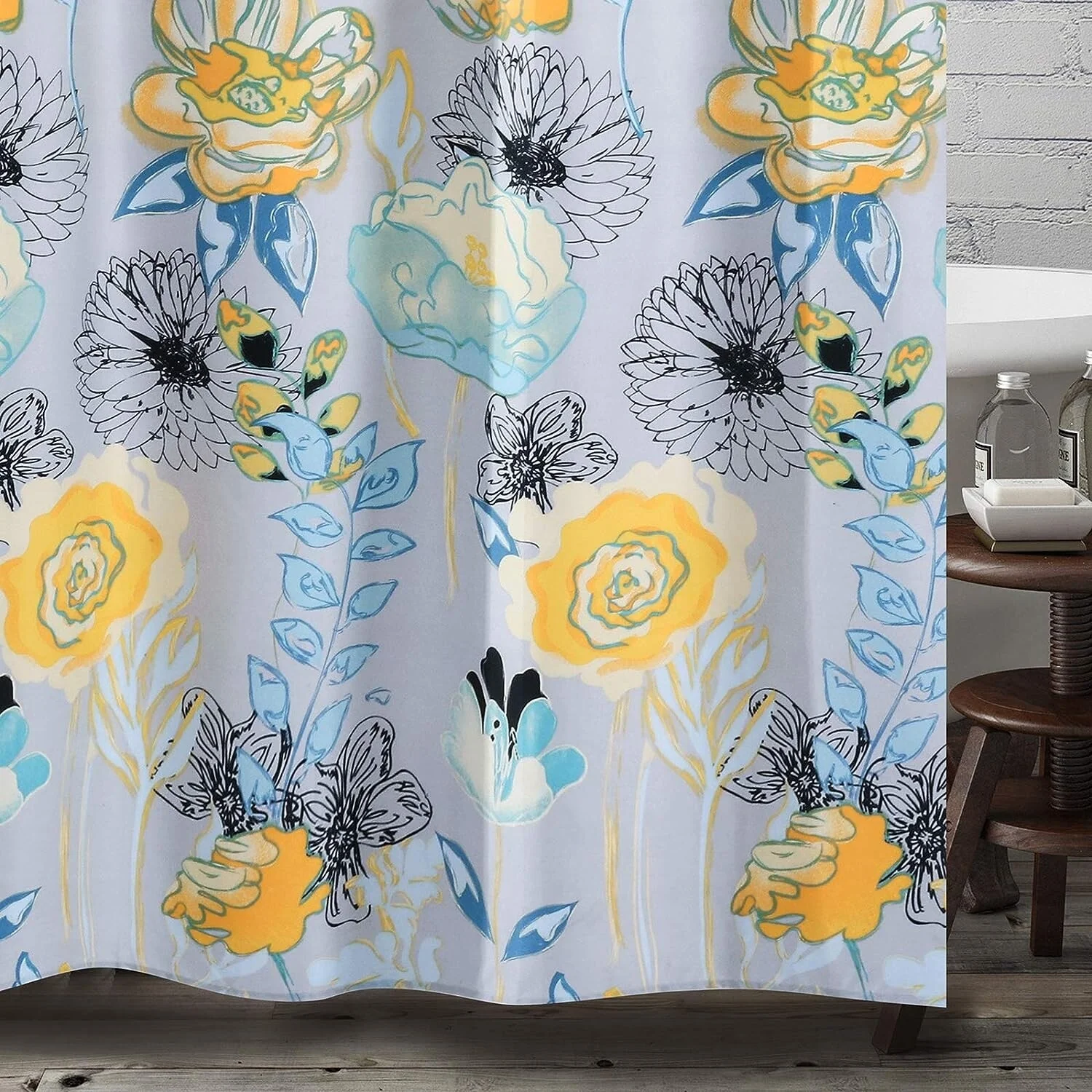 Porch & Den Maidenfern Grey/Yellow Flower Shower Curtain