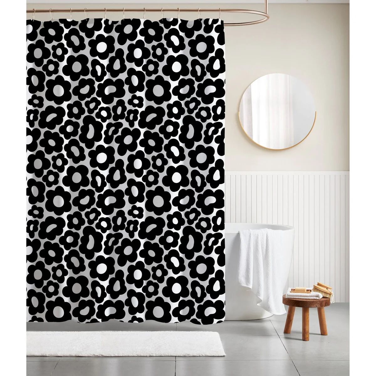 Laural Home Monochromatic Black Tulips Shower Curtain 71x72