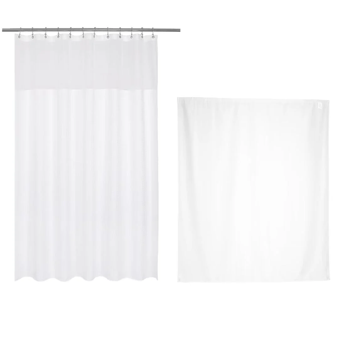 Hookless Monterey 3-in-1 Fabric Shower Curtain with Sheer Top Window, Flex-on Rings & PEVA Liner